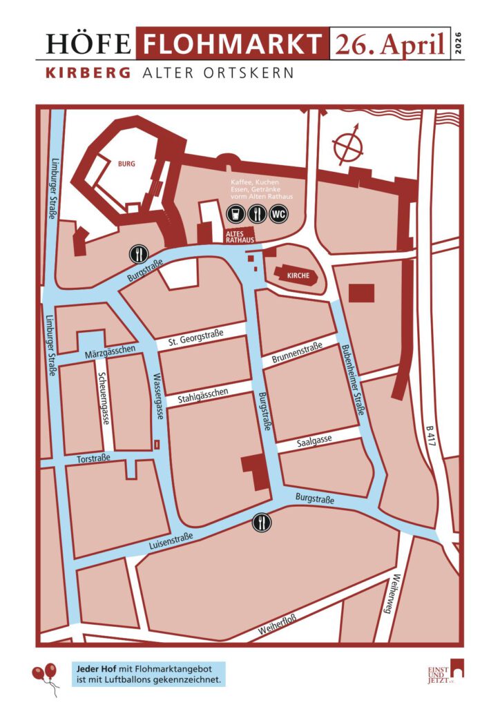 Autofahrer aufgepasst: Am Sonntag, den 26.04.2026 ist mit einem erhöhten Aufkommen von Schnäppchenjägern im alten Ortskern von Kirberg zu rechnen.